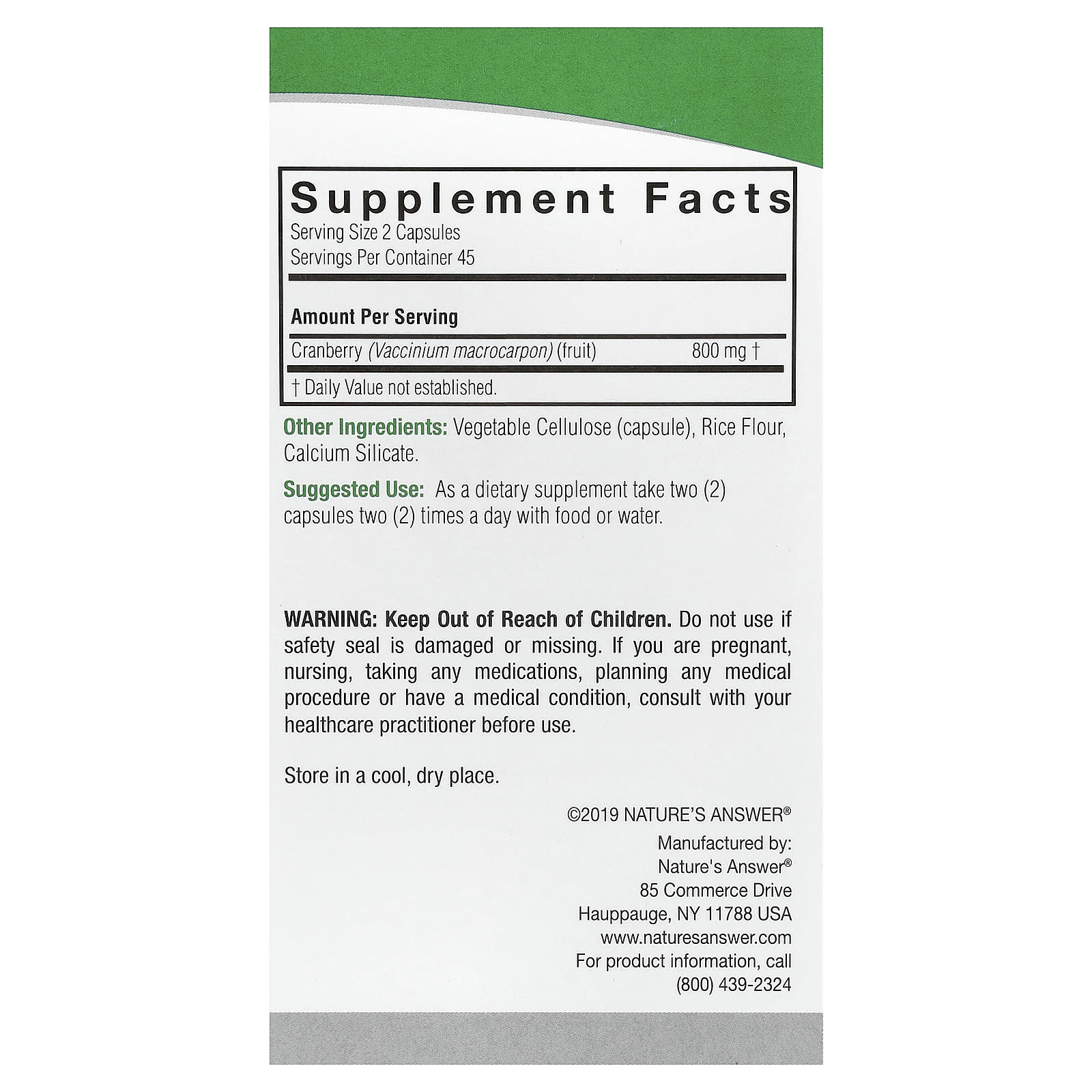 Natures Answer Cranberry 90 Cápsulas Vegetarianas (400 mg por Cápsula) – Nature’s Answer Suplementos Ervas Suplementos de Cranberry.
