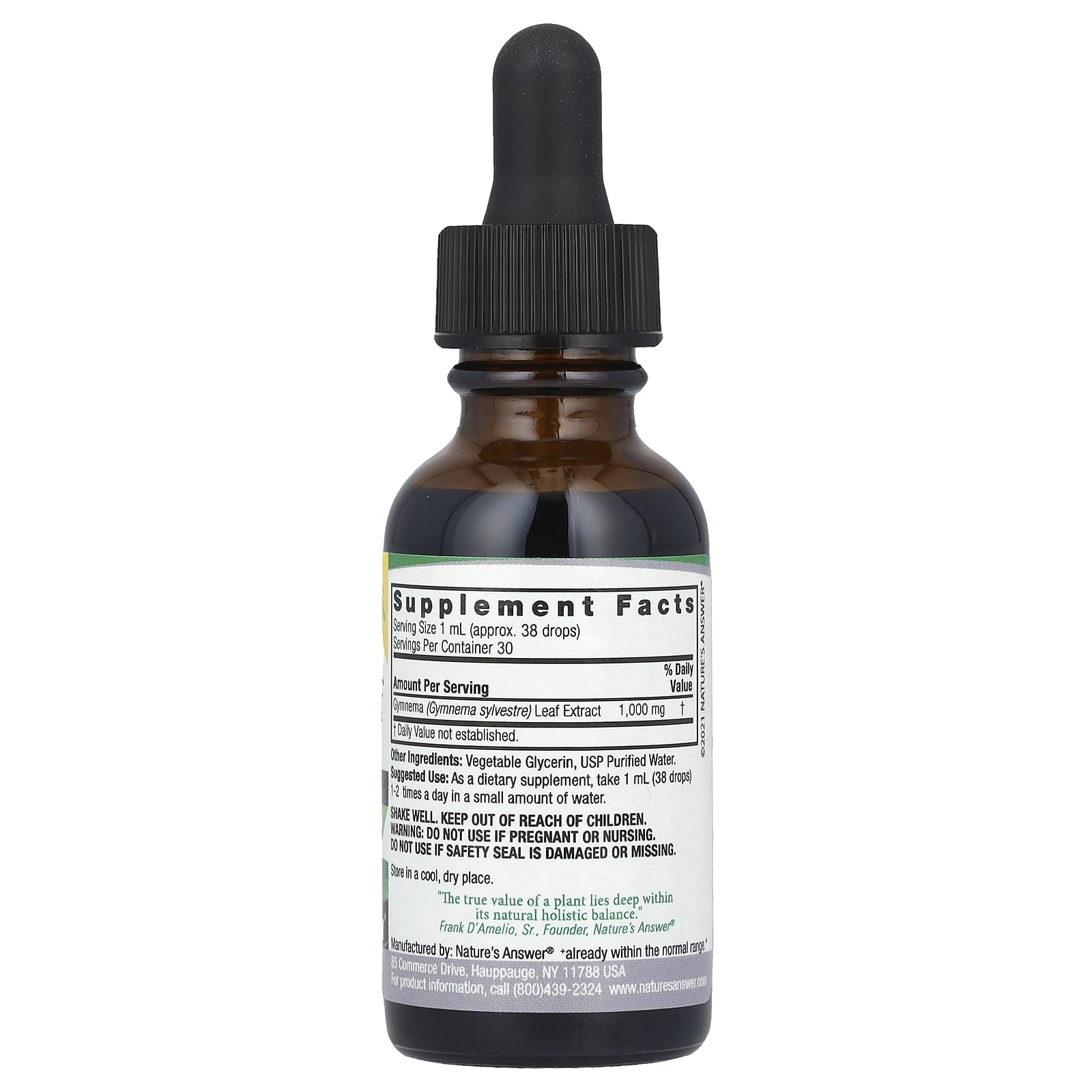 Natures Answer Extrato da Folha de Gymnema Sem Álcool 1.000 mg 30 ml (1 fl oz) – Nature’s Answer Suplementos Ervas Gymnema.