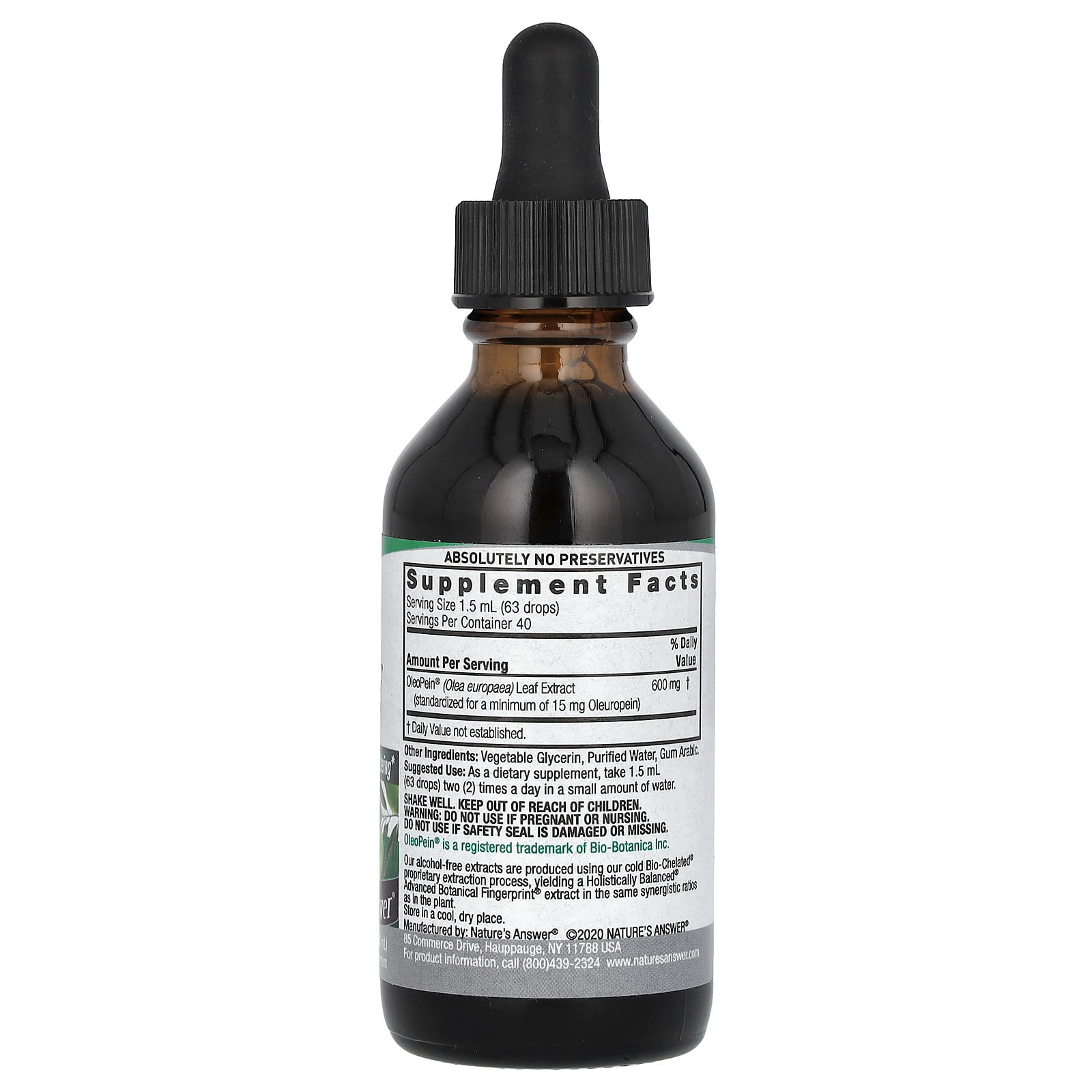 Natures Answer Extrato da Folha de Oliva Padronizado Sem Álcool 600 mg 60 ml (2 fl oz) – Nature’s Answer Suplementos Ervas Folha de Oliva Saúde Gripe e Resfriado.