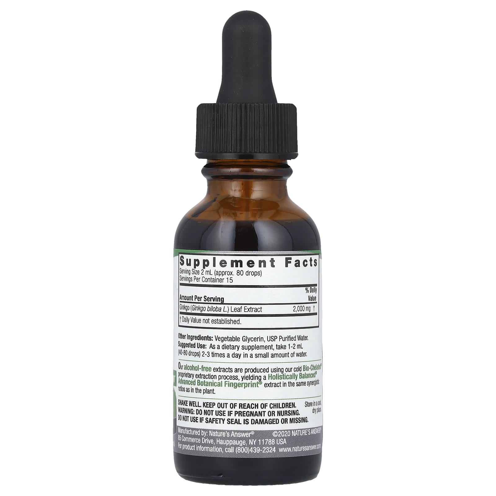 Natures Answer Extrato Fluido da Folha de Ginkgo Sem Álcool 2.000 mg 30 ml (1 fl oz) – Nature’s Answer Suplementos Ervas Ginkgo Biloba.
