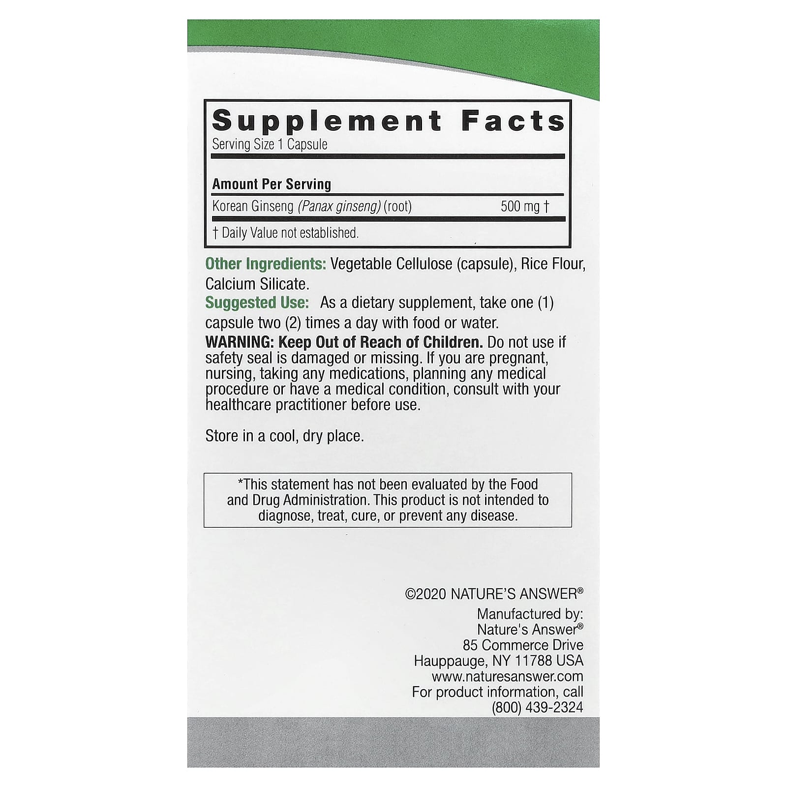 Natures Answer Ginseng Coreano 500 mg 50 Cápsulas Vegetarianas – Nature’s Answer Suplementos Ervas Ginseng Ginseng Asiático.