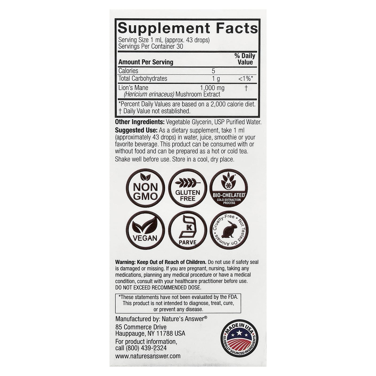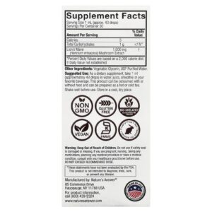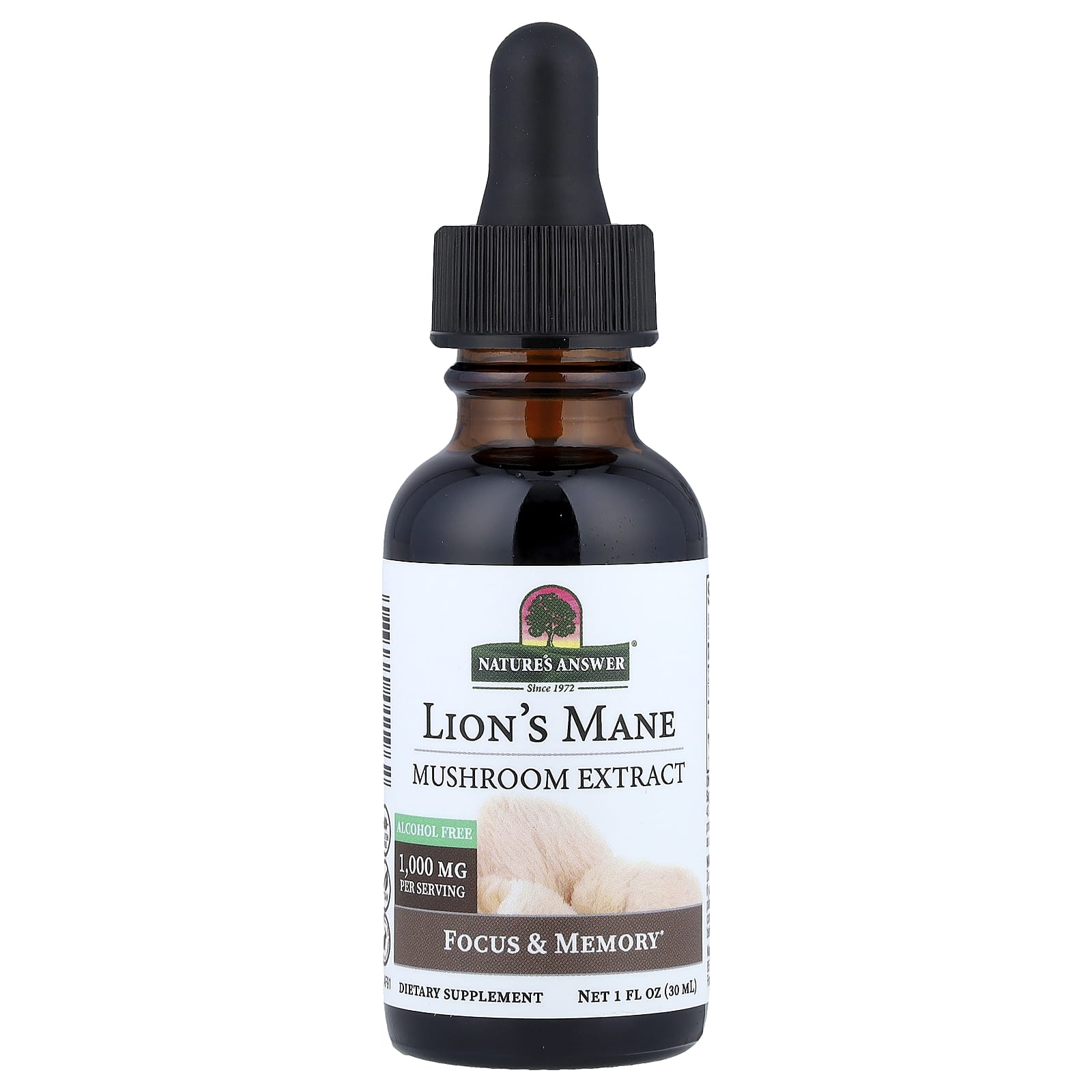 Natures Answer Juba-de-leão Extrato de Cogumelo Sem Álcool 30 ml (1 fl oz) – Nature’s Answer Suplementos Cogumelos Juba de Leão.