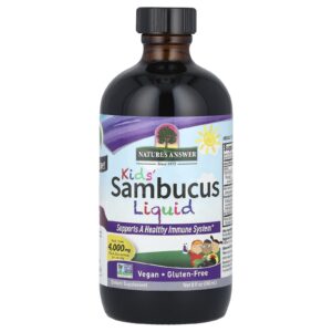 Natures Answer Líquido Sambucus para Crianças Sem Álcool 240 ml (8 fl oz) – Nature’s Answer Bebês e Crianças Saúde Infantil Gripe, Resfriado e Tosse Infantil Ervas Infantis.