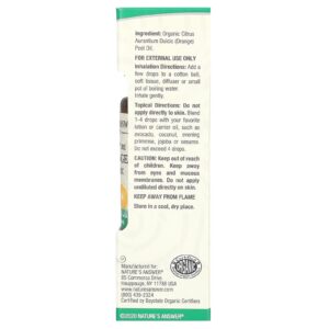 Natures Answer Óleo Essencial Orgânico 100% Pura Laranja 05 fl oz / 15 ml