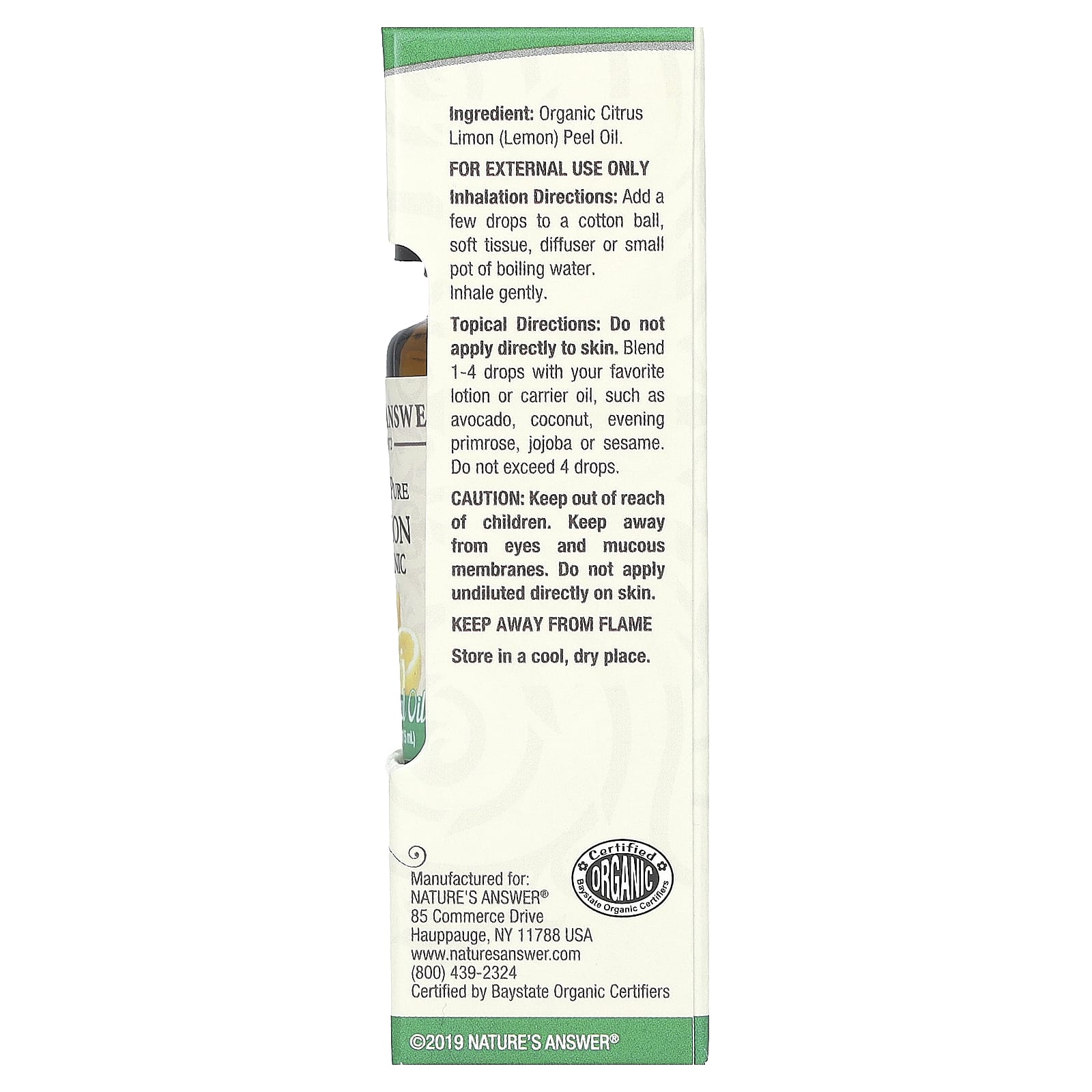 Natures Answer Óleo Essencial Orgânico Limão 100% Puro 15 ml (05 fl oz) – Nature’s Answer Cuidados Pessoais Óleos Essenciais e Aromaterapia Óleos Essenciais Individuais Óleo Essencial de Limão.