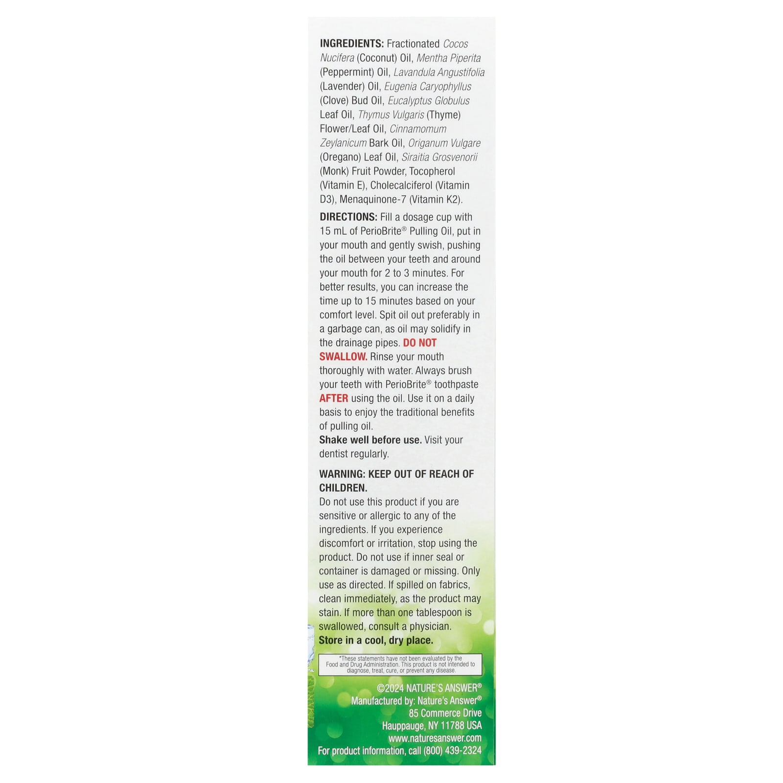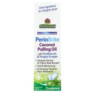 Natures Answer Óleo para Puxar de Coco com Escova de Dentes e Raspador de Língua PerioBrite Sabor Menta Refrescante 240 ml (8 fl oz) – Nature’s Answer Bebês e Crianças Higiene Bucal Enxaguantes Bucais para Crianças.
