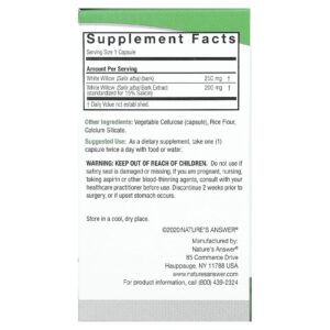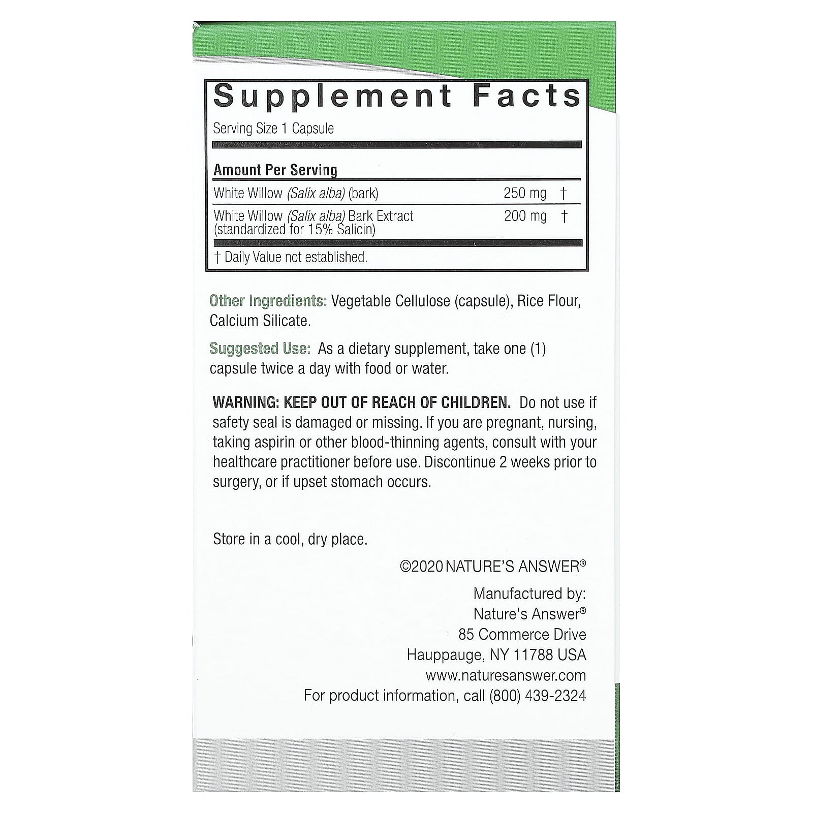Natures Answer Salgueiro Branco 450 mg 60 Cápsulas Vegetarianas – Nature’s Answer Suplementos Ervas Casca de Salgueiro Branco.