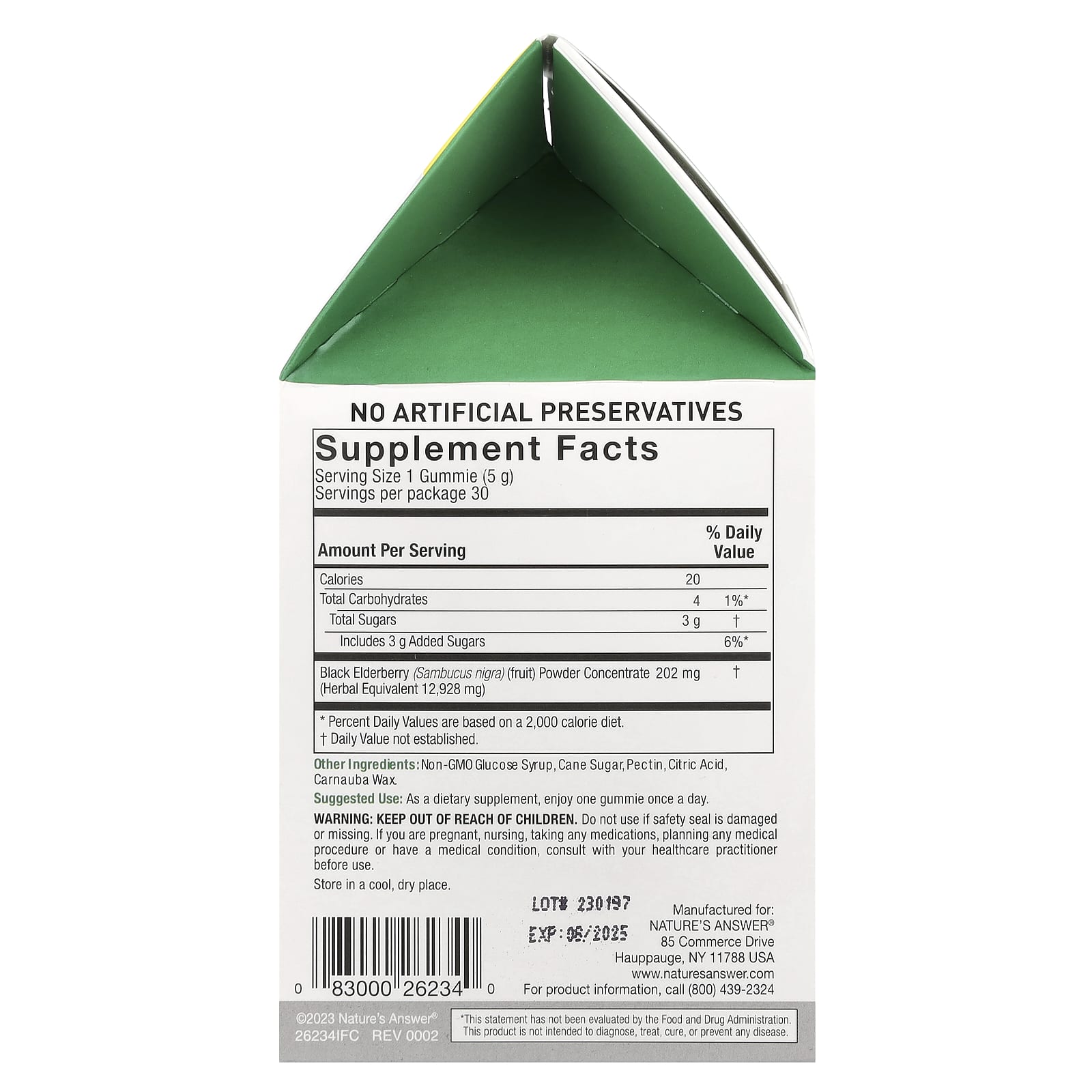 Natures Answer Sambucus Mega Gummies 7X Strength™ 202 mg 30 Gomas Veganas/Sem Gelatina – Nature’s Answer Suplementos Ervas Sabugueiro – Sambucus Saúde Auxílio à Imunidade.