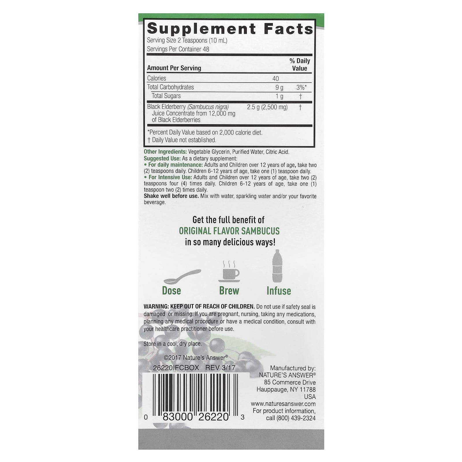 Natures Answer Sambucus Sabugueiro Preto Sem Álcool 2.500 mg 480 ml (16 fl oz)