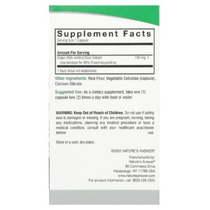 Natures Answer Semente de Uva 150 mg 60 Cápsulas Vegetarianas – Nature’s Answer Suplementos Antioxidantes Extrato de semente de uva.