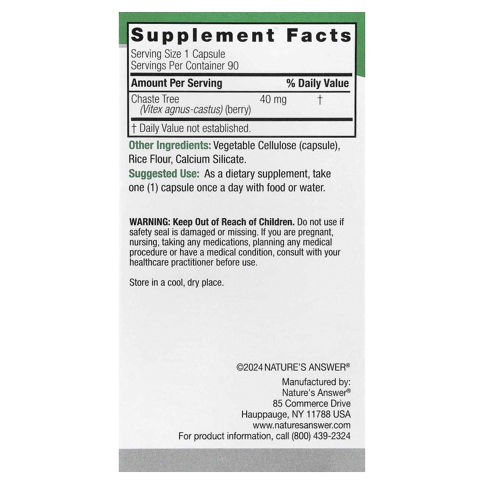 Natures Answer Vitex 40 mg 90 Cápsulas Vegetarianas – Nature’s Answer Suplementos Ervas Vitex (Chaste Berry).