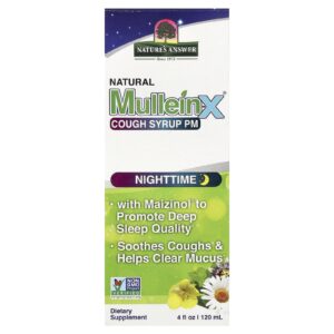 Natures Answer Xarope para Tosse Natural Mullein-X® à Noite Noturno 120 ml (4 fl oz) – Nature’s Answer Cuidados Pessoais Armário do Banheiro Pastilhas para garganta inflamada e tosse Inibidores de Tosse Bebês e Crianças Saúde Infantil Saúde dos adolescentes.