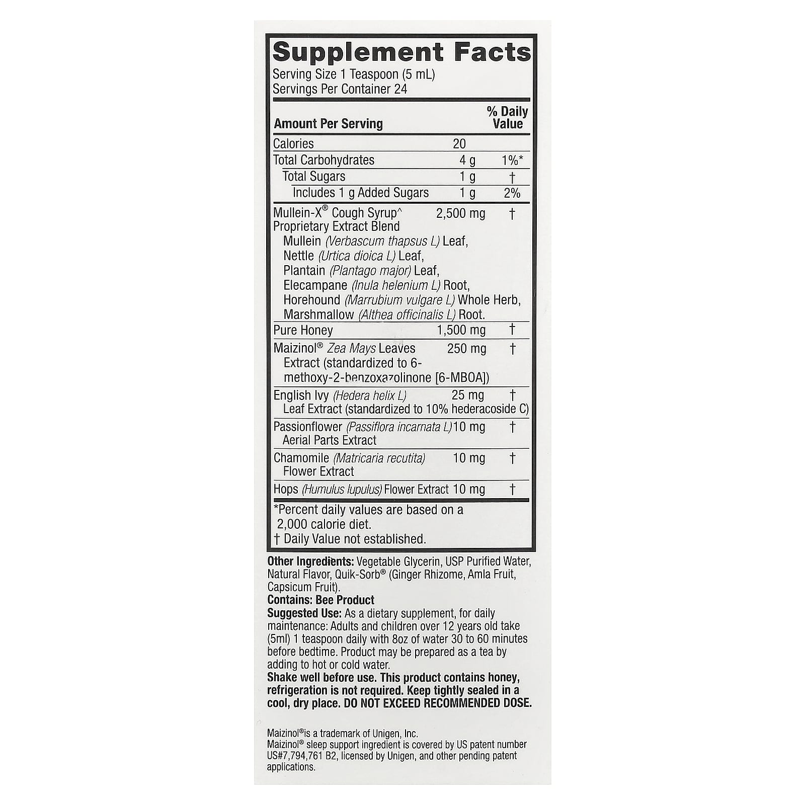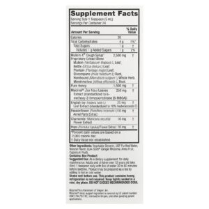 O Xarope para Tosse Multivitamínico PM^ de Mullein-X® da Nature’s Answer é uma mistura natural de ingredientes à base de ervas formulados e desenvolvidos para ajudar a limpar o muco, aliviar a irritação na garganta e promover a saúde do trato respiratório superior. Nossa fórmula noturna contém Maizinol®, um suplemento natural sem melatonina derivado de milho não OGM, clinicamente comprovado para aumentar o estágio restaurador do sono.