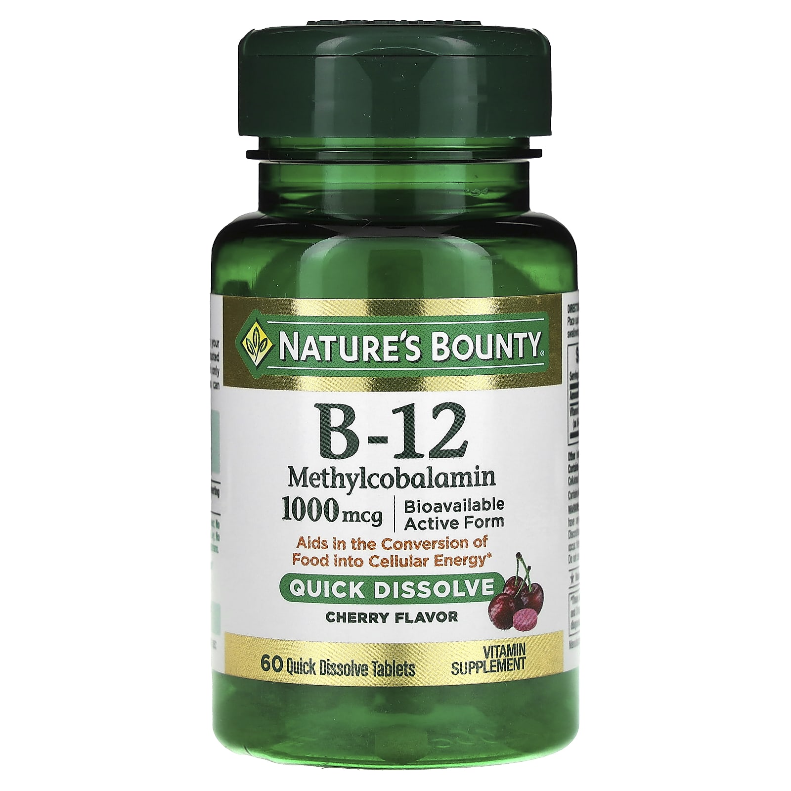 Natures Bounty B-12 e Mecobalamina Cereja 1.000 mcg 60 Comprimidos de Dissolução Rápida – Nature’s Bounty Suplementos Vitaminas Vitamina B Vitamina B12 (Cobalamina) Metilcobalamina.