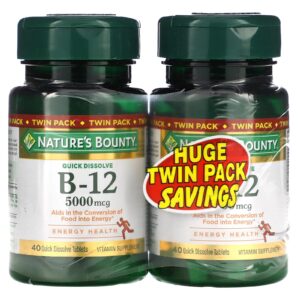 Natures Bounty B-12 Embalagem Dupla Sabor Natural de Cereja 5.000 mcg 40 Comprimidos de Dissolução Rápida Cada – Nature’s Bounty Suplementos Vitaminas Vitamina B Vitamina B12 (Cobalamina).