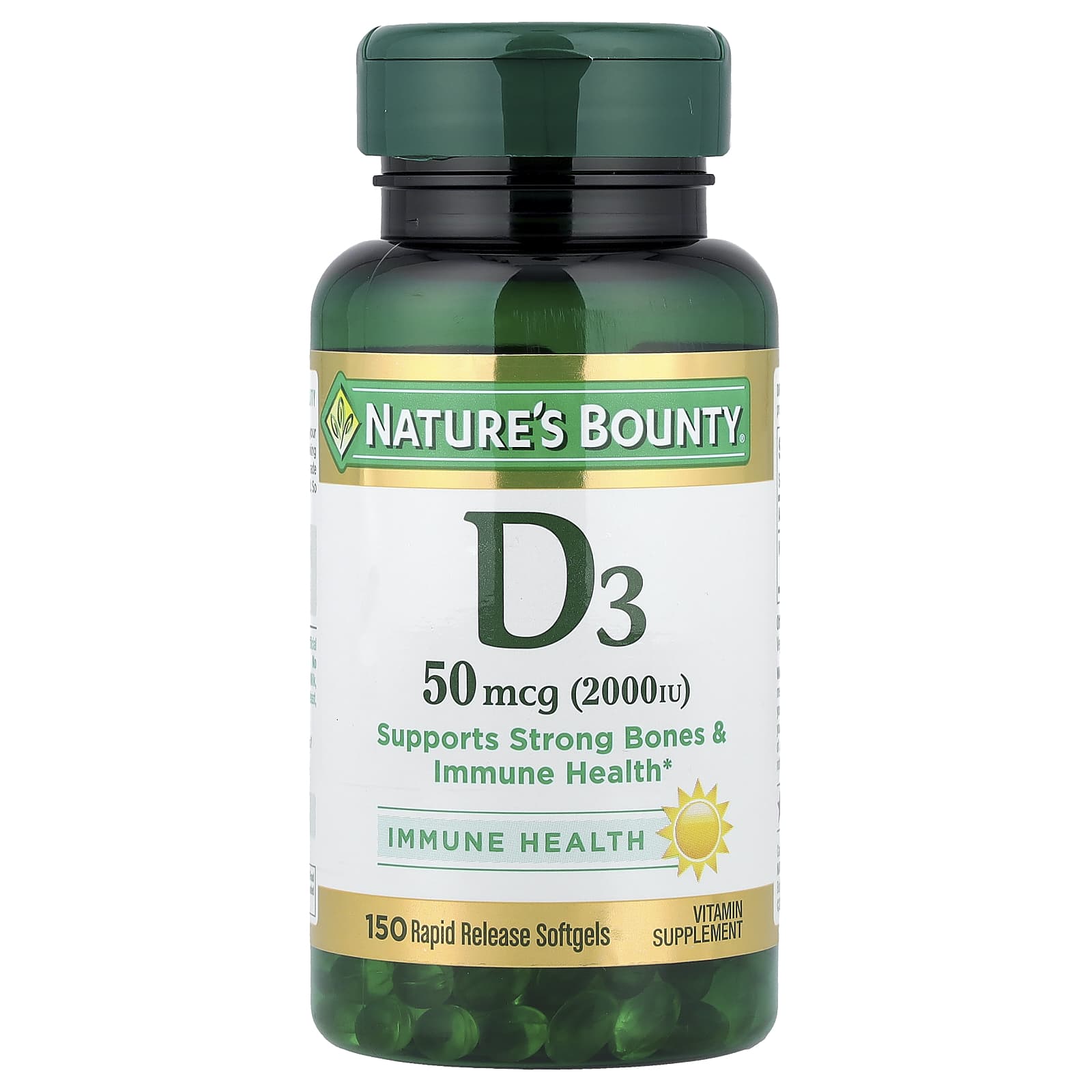 Natures Bounty D3 50 mcg (2.000 UI) 150 Cápsulas Softgel de Liberação Rápida – Nature’s Bounty Suplementos Vitaminas Vitamina D.