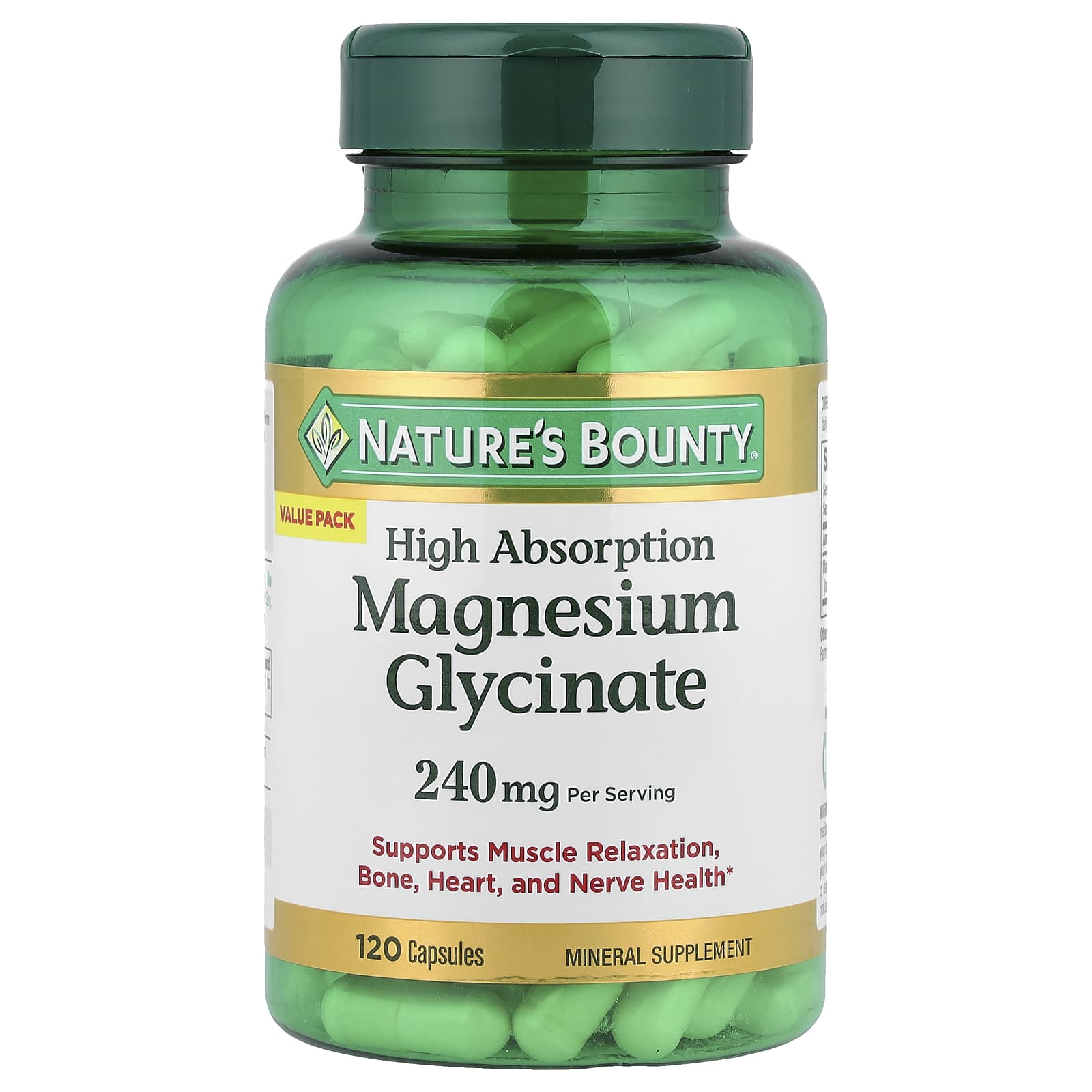 Natures Bounty Glicinato de Magnésio Alta Absorção 120 Cápsulas (120 mg por Cápsula) – Nature’s Bounty Suplementos Minerais Magnésio Glicinato de Magnésio.