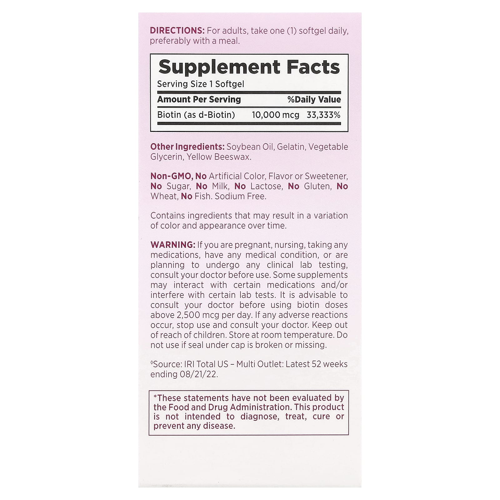 Natures Bounty Optimal Solutions® Cápsulas Softgel de Biotina 10.000 mcg 90 Cápsulas Softgel Líquidas de Liberação Rápida – Nature’s Bounty Suplementos Cabelos, Pele e Unhas Vitamina B7 (Biotina).