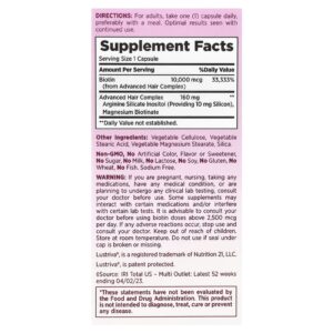 Se estiver grávida, amamentando, tomando qualquer medicamento, tiver algum problema de saúde ou estiver planejando fazer um exame laboratorial, consulte seu médico antes de usar o produto. Alguns suplementos podem interagir com certos medicamentos e/ou interferir em exames laboratoriais. É aconselhável consultar um médico antes de usar doses de biotina acima de 2.500 mcg por dia. Em caso de reações adversas, descontinue o uso e consulte um médico. Mantenha fora do alcance de crianças. Armazene em temperatura ambiente. Não use se o lacre sob a tampa estiver rompido ou faltando.