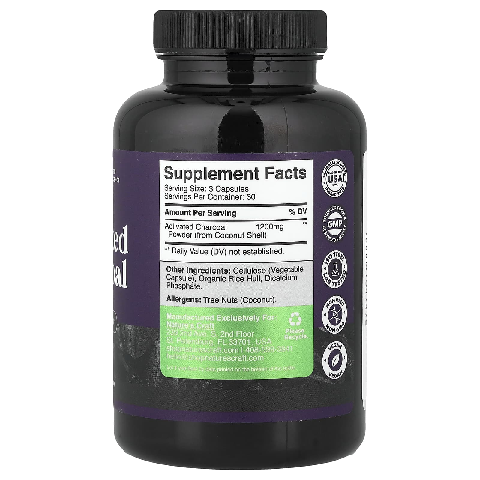 Natures Craft Carvão Ativado 90 Cápsulas (400 mg por Cápsula) – Nature’s Craft Suplementos Saúde Intestinal Carvão Ativado.