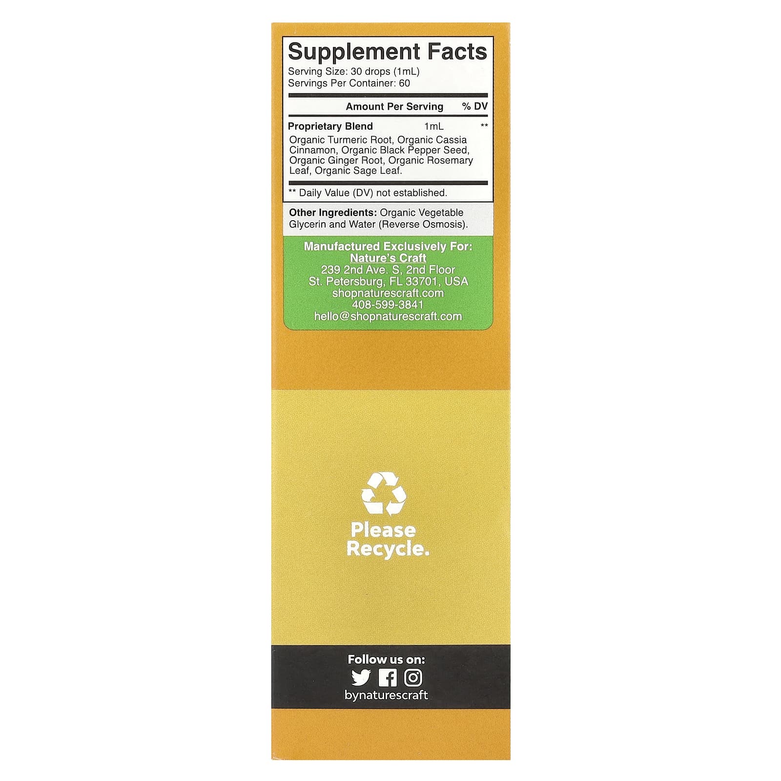 Natures Craft Complexo de Cúrcuma Sem Álcool Naturalmente Doce 60 ml – Nature’s Craft Suplementos Antioxidantes Cúrcuma e Curcumina.