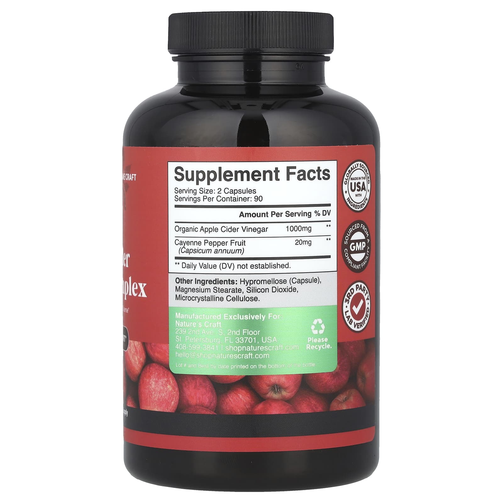 Natures Craft Complexo de Vinagre de Sidra de Maçã 180 Cápsulas – Nature’s Craft Suplementos Controle de peso Vinagre de maçã.