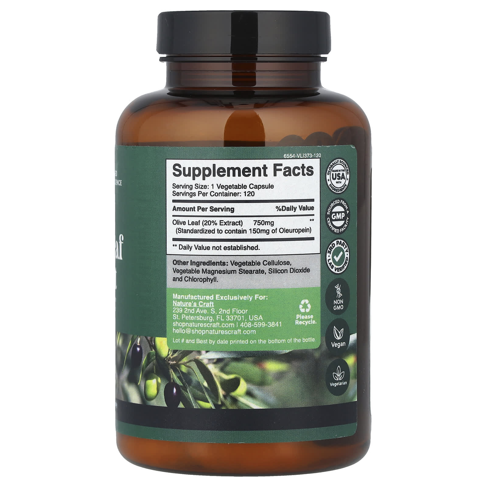 Natures Craft Extrato de Folha de Oliva 750 mg 120 Cápsulas – Nature’s Craft Suplementos Ervas Folha de Oliva.