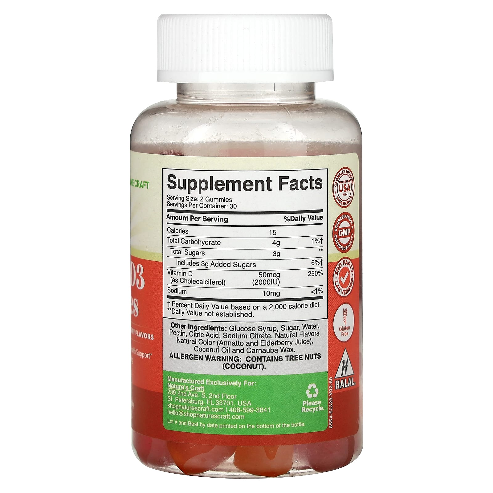 Natures Craft Gomas de Vitamina D3 Pêssego Manga Morango 60 Gomas (25 mcg (1.000 UI) por Goma) – Nature’s Craft Suplementos Vitaminas Vitamina D.