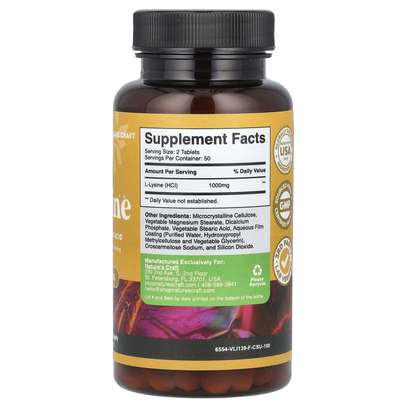 Natures Craft L-lisina 100 Comprimidos (500 mg por Cápsula)