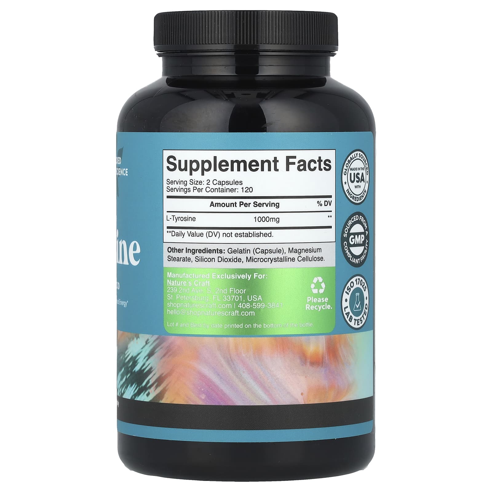 Natures Craft L-Tirosina 240 Cápsulas (500 mg por Cápsula) – Nature’s Craft Suplementos Aminoácidos L-Tirosina.