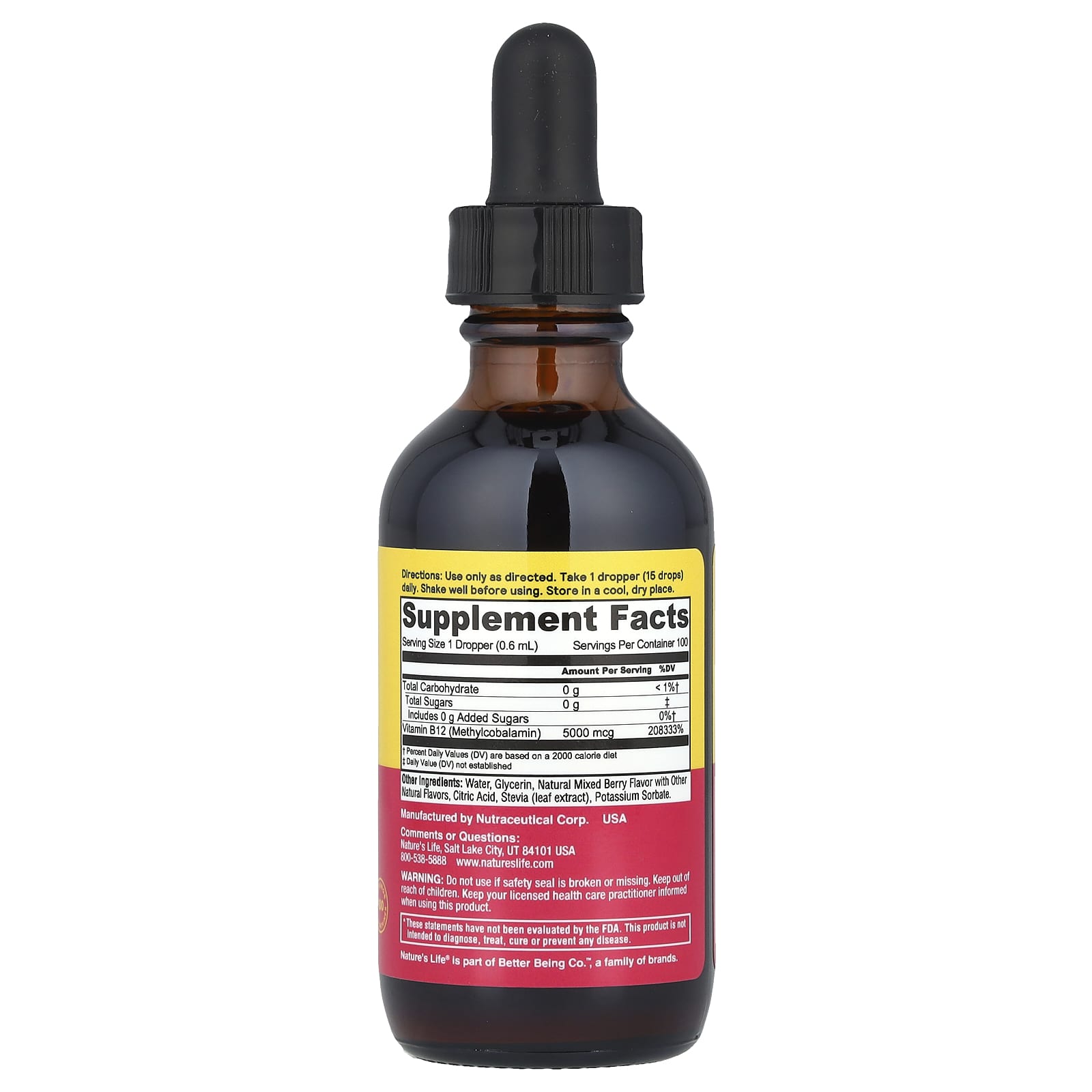 Natures Life Gotas de B-12 Sem Açúcar Frutos Silvestres 5.000 mcg 60 ml (2 fl oz)