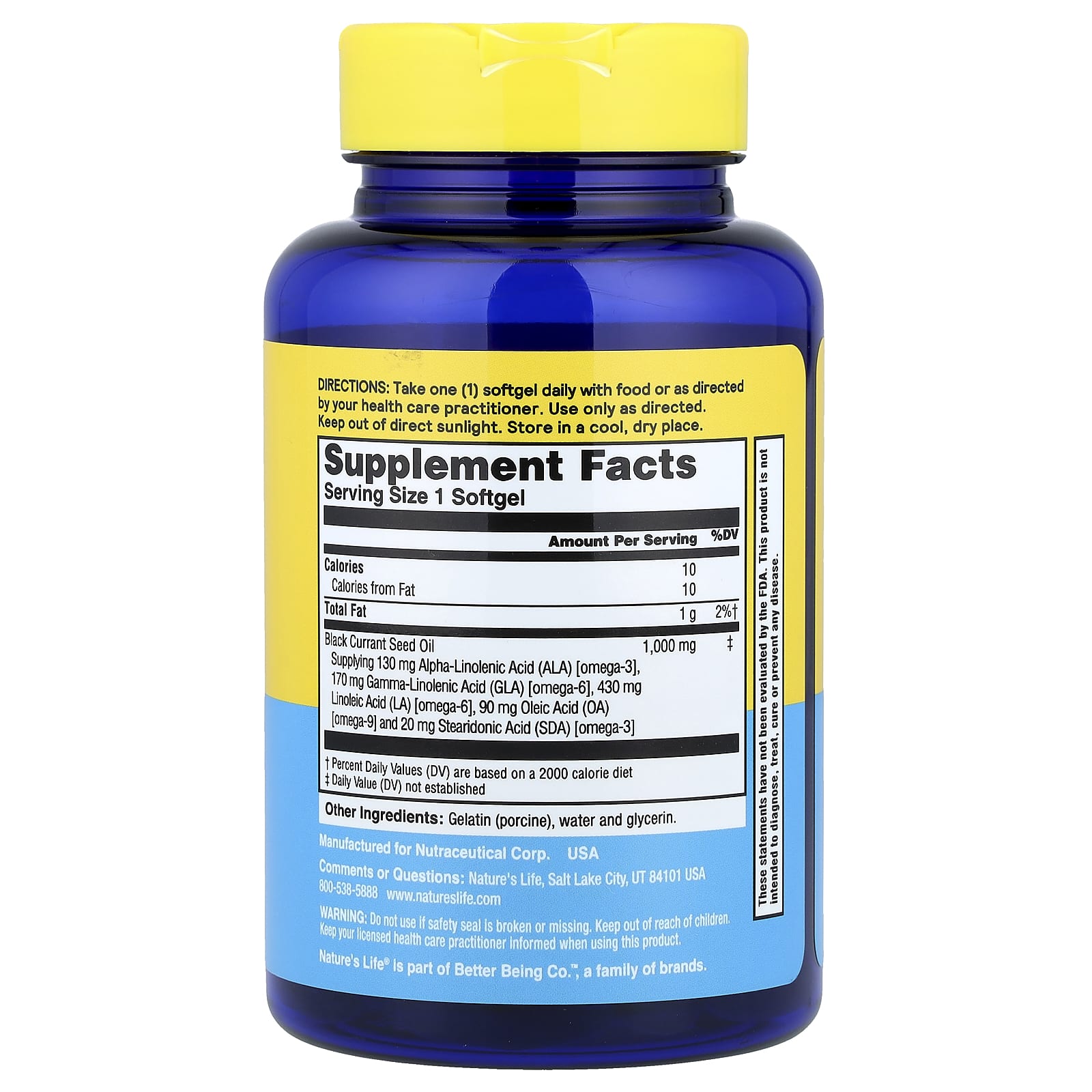 Natures Life Óleo de Groselha Preta 1.000 mg 60 Cápsulas Softgel – Nature’s Life Suplementos Ômegas e Óleos de Peixe (EPA/DHA) Ômega 3-6-9.