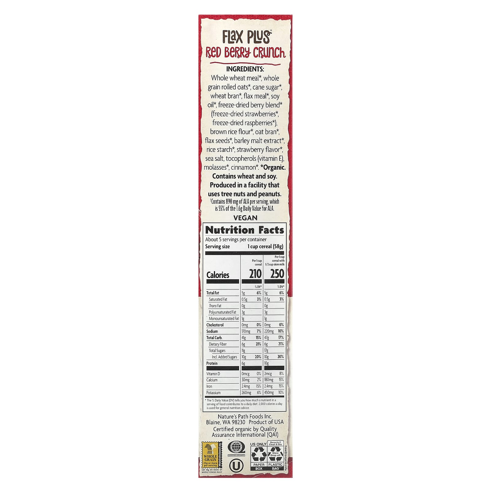 Nosso cereal Crocante de Frutos Silvestres Flax Plus® é a combinação perfeita de flocos de linhaça e trigo integral orgânico, cachos de granola de aveia e morangos e framboesas secos. O resultado é um café da manhã deliciosamente crocante e saudável que mostrará a você como alimentos orgânicos podem ser bons.