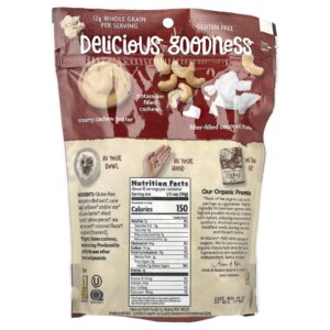 Aveia em Flocos de Grãos Integrais sem Glúten*, açúcar de cana*, óleo de girassol* e/ou soja*, manteiga de caju*, coco desidratado*, pedaços de castanha de caju*, sal marinho, amido de arroz*, sabor de coco*, tocoferóis (Vitamina E).