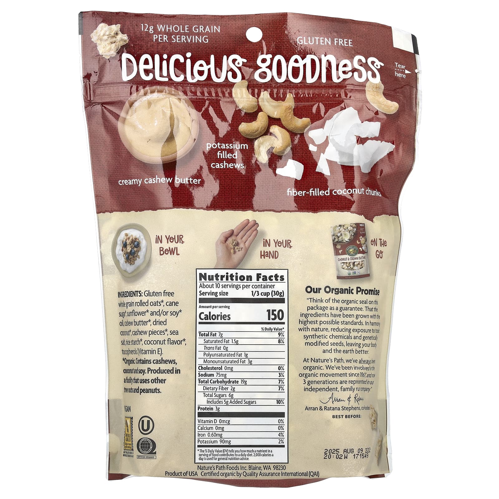 Natures Path Granola Crocante Manteiga de Caju e Coco 312 g (11 oz) – Nature’s Path Alimentos Cereais e alimentos para café da manhã Granola.