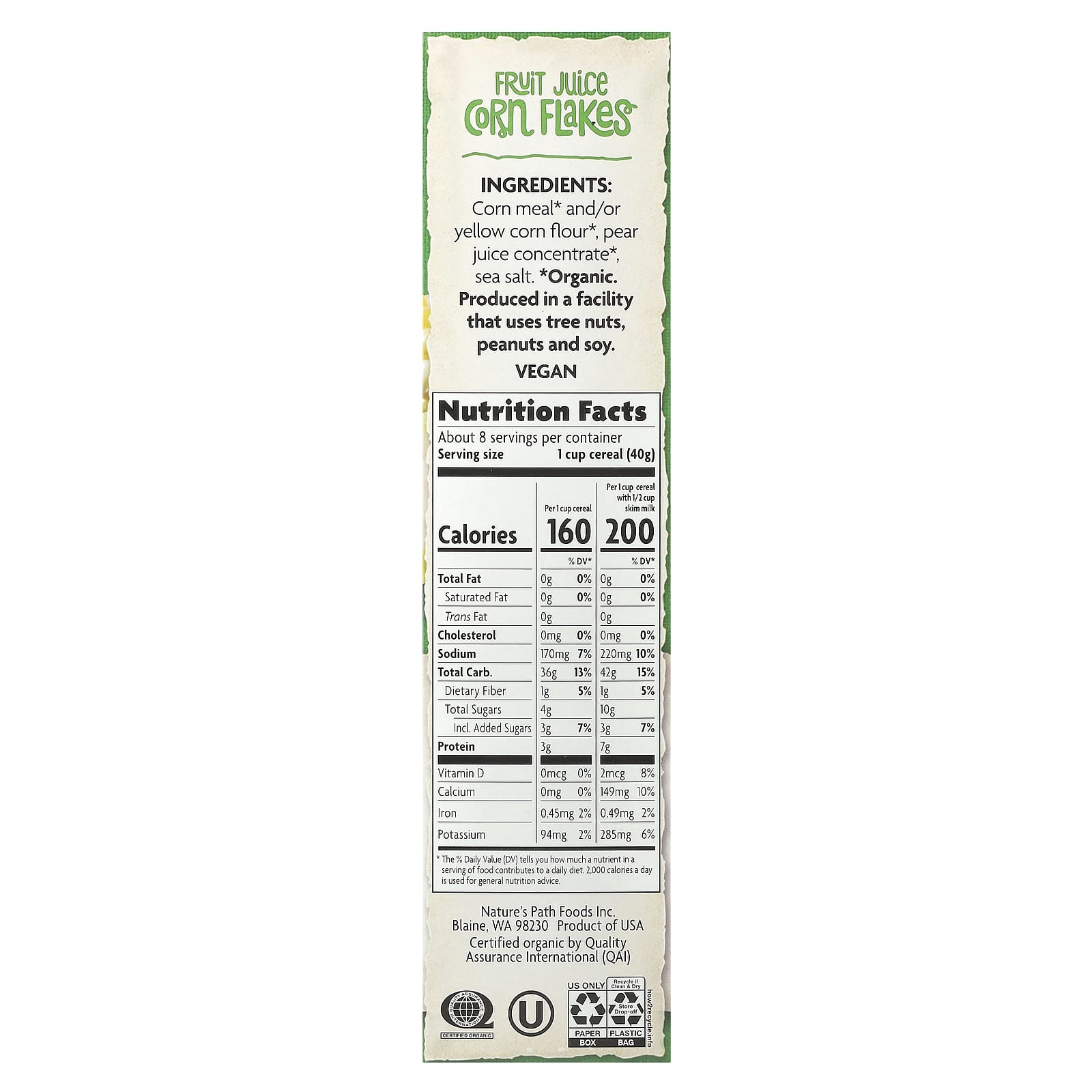 Natures Path Suco de Frutas Orgânicas Flocos de Milho 300 g (106 oz) – Nature’s Path Alimentos Cereais e alimentos para café da manhã Cereais Frios.