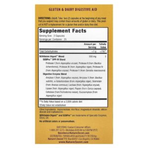 Natures Secret Glúten e Laticínios Digestive Aid™ 50 Cápsulas – Nature’s Secret Suplementos Saúde Intestinal Enzimas Digestivas.