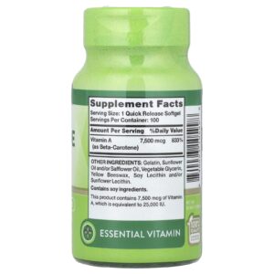 Natures Truth Betacaroteno 7.500 mcg (25.000 UI) 100 Cápsulas Softgel de Liberação Rápida – Nature’s Truth Suplementos Antioxidantes Beta Caroteno.