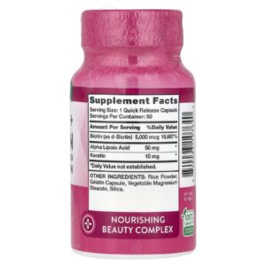 Natures Truth Biotina + Queratina com Ácido Tióctico 50 Cápsulas de Liberação Rápida – Nature’s Truth Suplementos Cabelos, Pele e Unhas Vitamina B7 (Biotina).