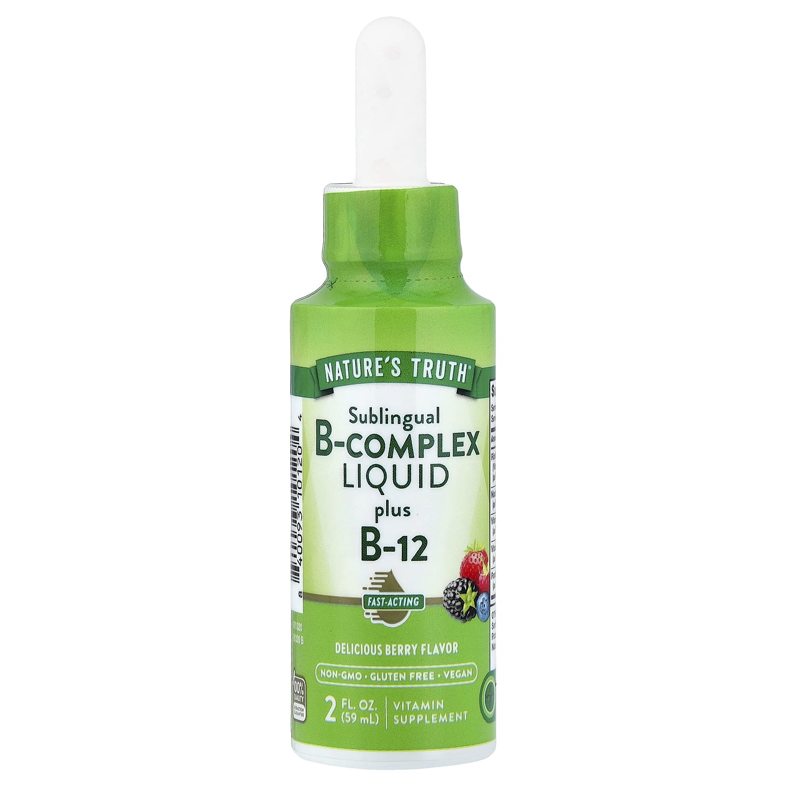 Natures Truth Complexo B Sublingual Líquido + B-12 Fruto Silvestre 59 ml (2 fl oz) – Nature’s Truth Suplementos Vitaminas Vitamina B Complexo de Vitaminas B Vitamina B12 (Cobalamina).