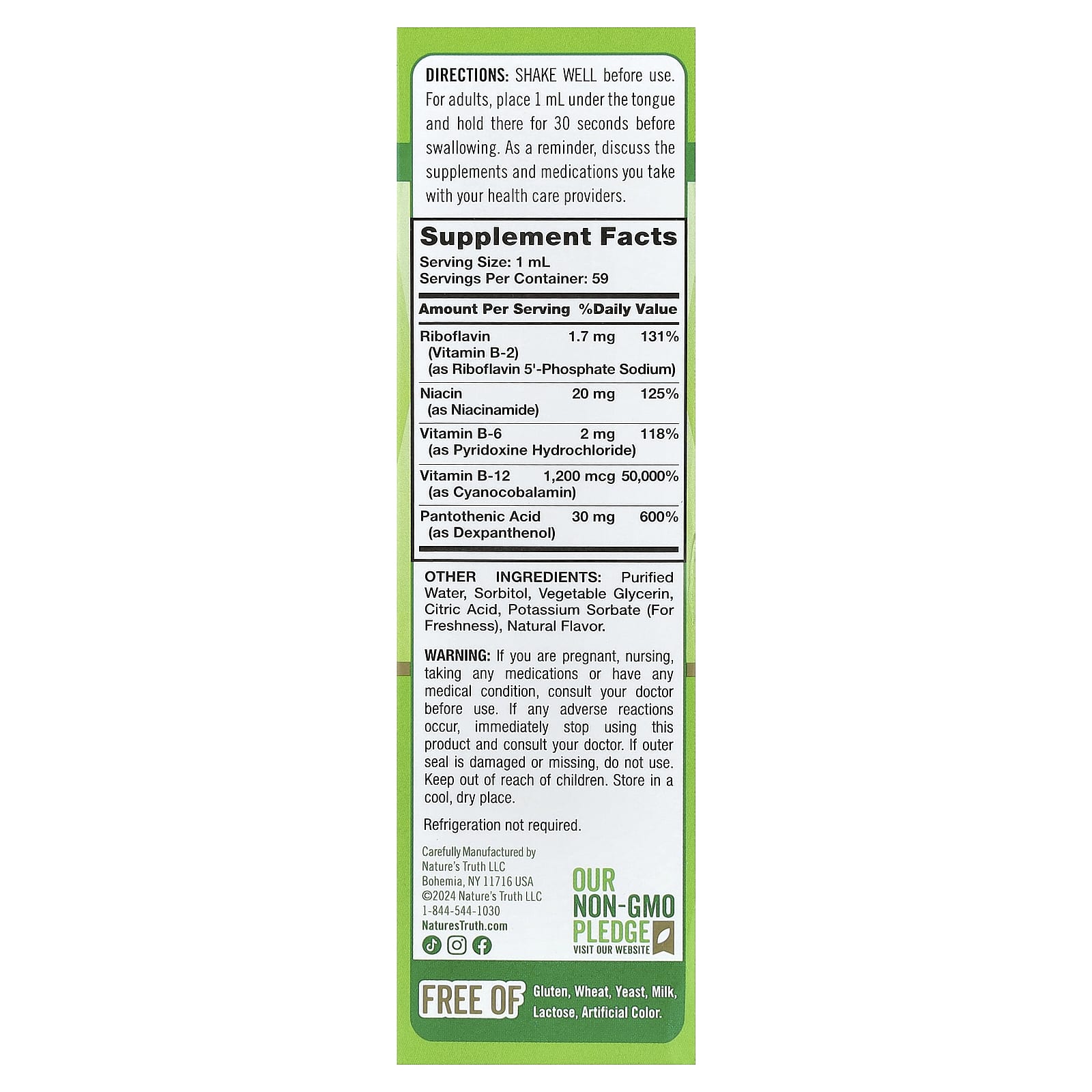Natures Truth Complexo B Sublingual Líquido + B-12 Fruto Silvestre 59 ml (2 fl oz)