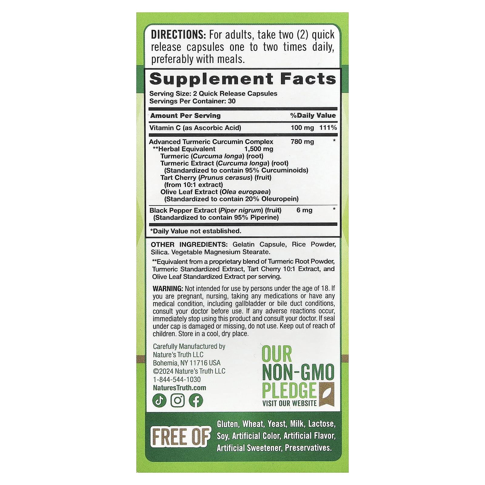 Natures Truth Complexo de Curcumina de Cúrcuma 60 Cápsulas de Liberação Rápida – Nature’s Truth Suplementos Antioxidantes Cúrcuma e Curcumina.