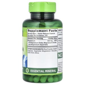 Natures Truth Complexo de Magnésio Triplo 100 Cápsulas de Liberação Rápida (420 mg por Cápsula) – Nature’s Truth Suplementos Minerais Magnésio Complexo de Magnésio.