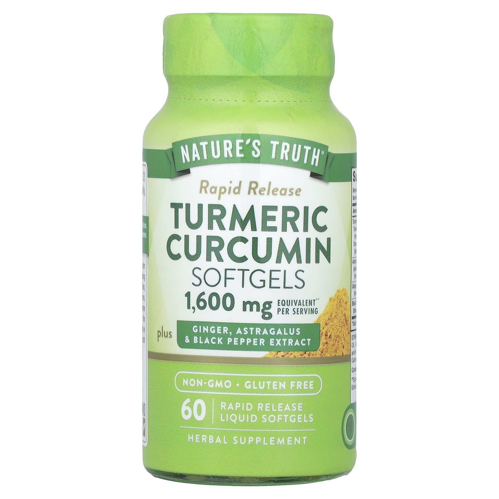 Natures Truth Curcumina de Cúrcuma e Extrato de Gengibre Astragalus e Pimenta-do-reino 60 Cápsulas Softgel Líquidas de Liberação Rápida – Nature’s Truth Suplementos Ervas Suplementos de Gengibre Suplementos de Cúrcuma e Gengibre Antioxidantes Cúrcuma e Curcumina.