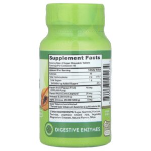 Nossos comprimidos mastigáveis de Enzimas de Papaia são o complemento perfeito após as refeições. Cada dose fornece 45 mg de Papaína, 20 mg de Mamão, 8 mg de Protease e 8 mg de Alfa-Amilase em práticos comprimidos mastigáveis. Esses comprimidos vegetarianos têm um delicioso sabor tropical natural e são uma ótima alternativa para quem não gosta de engolir comprimidos
