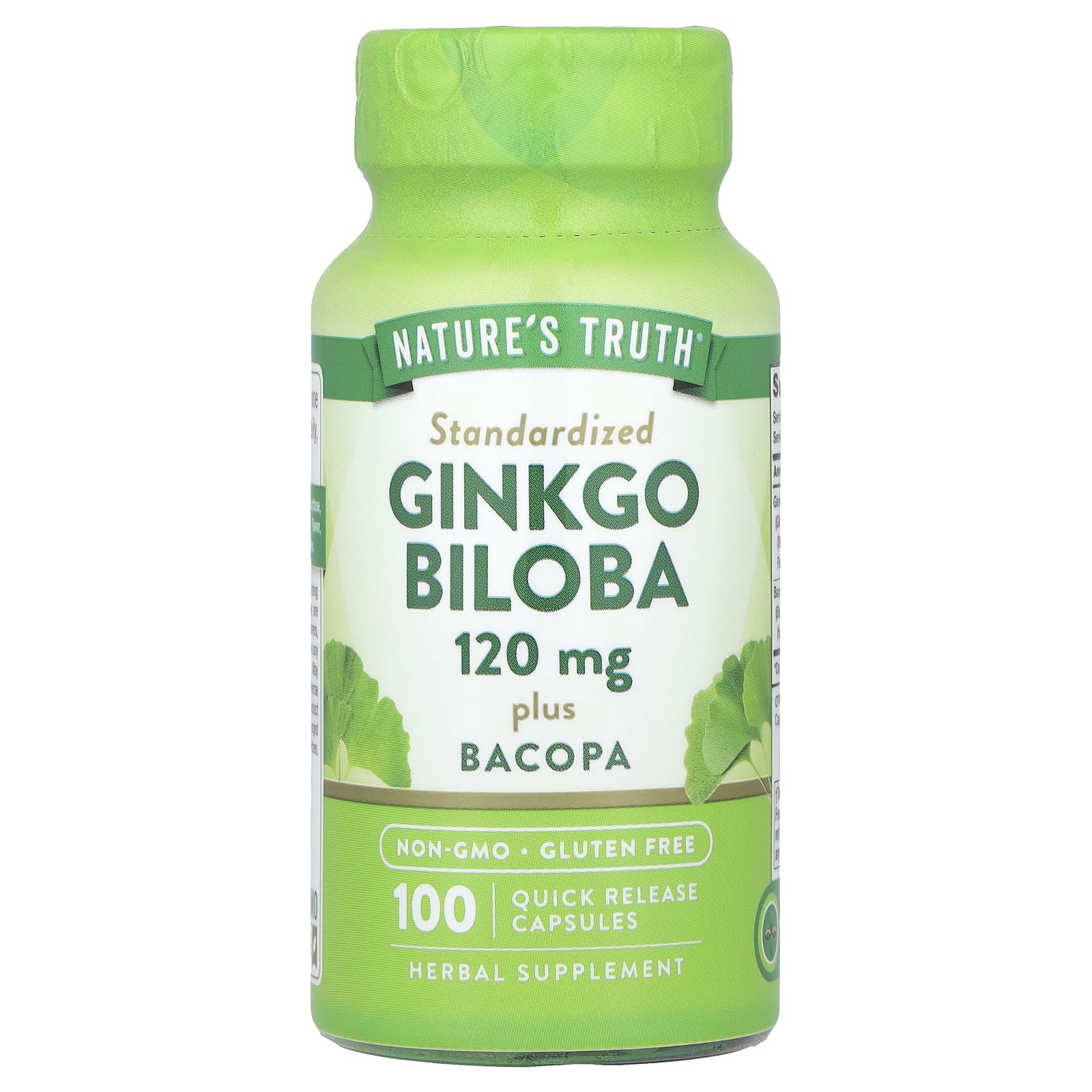 Natures Truth Ginkgo Biloba Plus Bacopa 120 mg 100 Cápsulas de Liberação Rápida