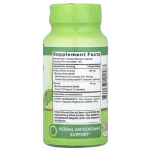 Cada dose de nossas cápsulas de Ginkgo biloba fornece 120 mg de Extrato de Ginkgo Biloba e 40 mg do equivalente a Bacopa, outra erva tradicional. Muitas pessoas optam por adicionar um suplemento de Ginkgo biloba à sua rotina para receber os benefícios das ervas e os fitonutrientes tradicionais. Basta uma cápsula de liberação rápida por dia.