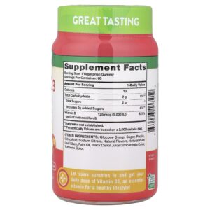 Natures Truth Gomas de Vitamina D3 Alta Potência Sabor Delicioso de Pêssego 125 mcg (5.000 UI) 60 Gomas – Nature’s Truth Suplementos Vitaminas Vitamina D.