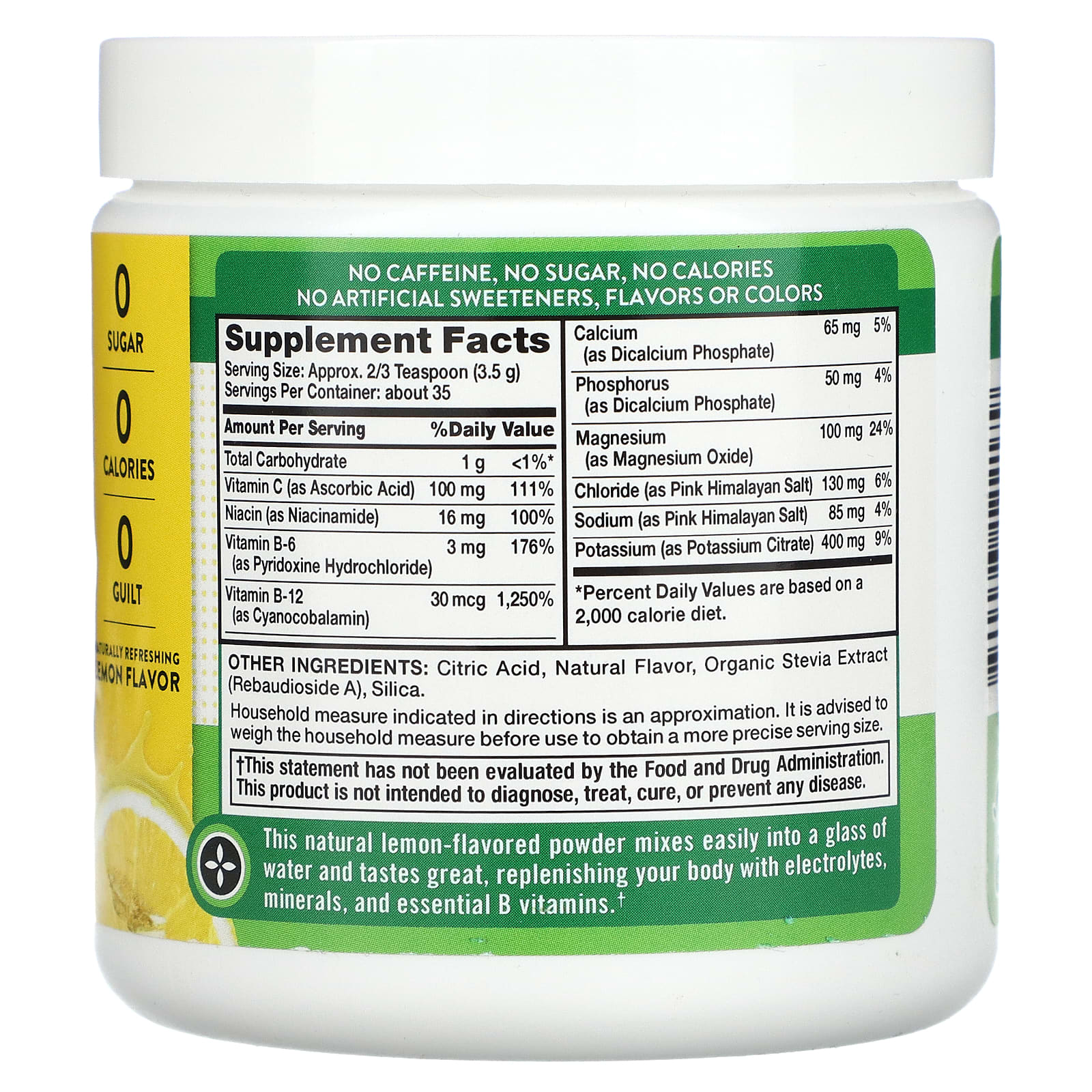 This natural lemon-flavored powder mixes easily into a glass of water and tastes great, replenishing your body with electrolytes, minerals, and essential B vitamins.