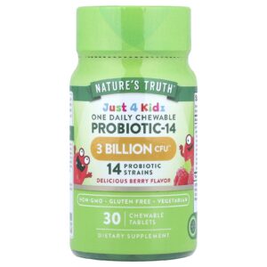 Natures Truth Just 4 Kidz Um Probiótico Mastigável Diário-14 Frutos Silvestres Deliciosos 30 Comprimidos Mastigáveis – Nature’s Truth Bebês e Crianças Saúde Infantil Probióticos Infantis.
